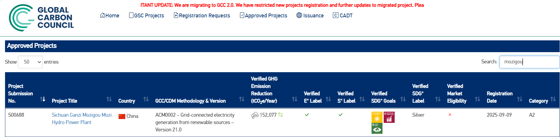此次磨子沟水电站乐成注册GCC项目,焦点在于其减排效果通过了GCC的严酷审核——作为全球南方国家首个国际自愿碳抵消机制,GCC以“透明、严谨、可一连”为焦点原则,其签发的“批准碳信用(ACCs)”,是企业自愿抵消碳排放的优质选择。对磨子沟水电站而言,GCC注册意味着: