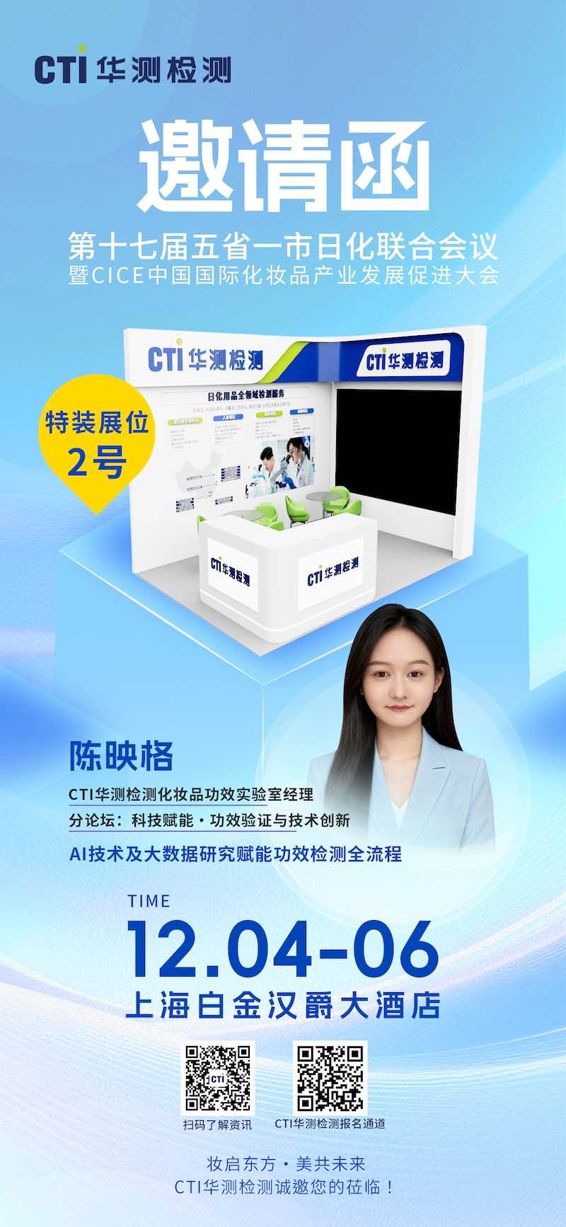 2025Äê12ÔÂ4ÈÕÖÁ6ÈÕ£¬µÚÊ®Æß½ìÎåʡһÊÐÈÕ»¯ÍŽá¾Û»áôßCICEÖйú¹ú¼Ê»¯×±Æ·¹¤ÒµÉú³¤Ôö½ø´ó»á½«ÔÚÉϺ£Ê¢´ó¾ÙÐУ¬CTI9888À˹ά¼Ó˹¼ì²â³ÏÑûÄúݰÁÙÌØ×°Õ¹Î»2ºÅ¹²ÐðÉú³¤¡£¾Û»áʱ´ú£¬CTI9888À˹ά¼Ó˹¼ì²â»¯×±Æ·¹¦Ð§ÊµÑéÊÒ˾Àí³ÂÓ³¸ñ½«ÊÜÑû³öϯ“¿Æ¼¼¸³ÄÜ·¹¦Ð§ÑéÖ¤ÓëÊÖÒÕÁ¢Òì”·ÖÂÛ̳£¬Î§ÈÆ“AIÊÖÒÕ¼°´óÊý¾ÝÑо¿¸³Äܹ¦Ð§¼ì²âÈ«Á÷³Ì”ÕâÒ»Ö÷Ì⣬ÓëÒµ½ç·ÖÏíÔõÑùͨ¹ýAI¼°×Ô¶¯»¯Íƶ¯¹¦Ð§ÔËÓªÖÊÁ¿Á¢Ò죬̽ÌÖÔõÑùʹÓôóÊý¾ÝÍÚ¾òÒÔÍêÉÆ¼ì²âÒªÁì¼°Ïà¹ØÊµ¼ùЧ¹û£¬ÎªÄúÕ¹ÏֿƼ¼ÎªÐÐÒµ´øÀ´µÄȫпÉÄÜ¡£