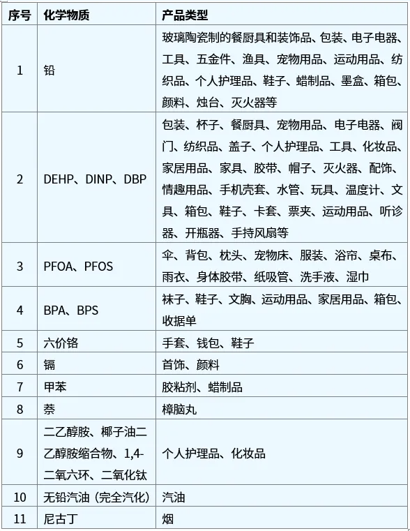 ¡¡¡¡2025ÄêÊý¾ÝÏÔʾ·ÇʳÎïÀà²úÆ·Éæ°¸ÎïÖÊÈçÏ£¬ÆäÖÐÇ¦Éæ¼°°¸Àý×î¶à£¬Õ¼±ÈΪ38.4%£¬ÁÚ±½ÎïÖÊ£¨DEHP¡¢DINP¡¢DBP£©Õ¼±ÈΪ31%£¬¶þÒÒ´¼°·¡¢Ò¬×ÓÓͶþÒÒ´¼°·ËõºÏÎï¡¢1,4-¶þÑõÁù»·¡¢¶þÑõ»¯îÑ£¨¿ÉÎüÈ룩ËÄÏîÎïÖÊÉæ°¸Õ¼±ÈΪ13%£¬Ë«·ÓSÕ¼±ÈΪ7.8%£¬PFOAÉæ°¸Õ¼±ÈΪ3% ¡£¹ØÓÚPFOA°¸Àý˵Ã÷£º2025Äê¹ØÓÚPFOAµÄ°¸ÀýÉæ¼°É¡¡¢±³°ü¡¢ÕíÍ·¡¢³èÎï´²¡¢¿ã×Ó¡¢ÓêÒ¡¢Ô¡Á±¡¢×À²¼¡¢Ö½Îü¹ÜµÈ£¬½ÏÍùÄêͬÆÚÏà±È°¸ÀýÊýÄ¿¼°Éæ°¸²úÆ·ÀàÐÍÓÐËùÔö¶à£¬Ïà¹ØÆóÒµÐèÖØµã¹Ø×¢ ¡£