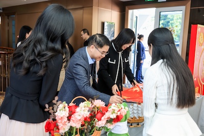 特别的茶歇时光不但提供了细腻的茶点 ,更融入了富厚的古板文化体验。嘉宾们加入写福字、拓印、投壶、香包制作等互动游戏 ,并在游轮特色打卡点留念。