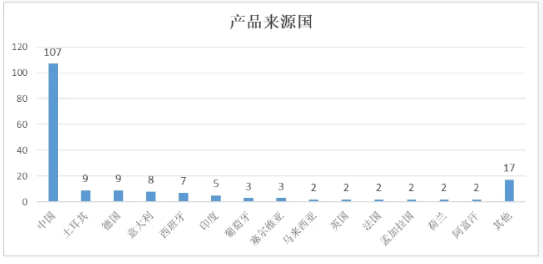 ¡¡¡¡²úƷȪԴµØ£º180ÆðÎ¥¹æ²úÆ·ÖУ¬À´×ÔÖйú£¨°üÀ¨ÖйúÏã¸ÛºĮ́Í壩µÄ²úÆ·107Æð£¬Õ¼±È59%¡£À´×ÔÍÁ¶úÆäµÄ²úÆ·9Æð£¬µÂ¹ú9Æð£¬Òâ´óÀû8Æð£¬Î÷°àÑÀ7Æð£¬Ó¡¶È5Æð£¬ÆäËû¹ú¼ÒµÄ½ÏÉÙ¡£Ïê¼ûÏÂͼ¡£