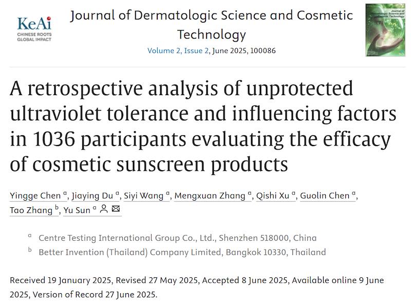 ¿ËÈÕ£¬CTI9888À˹ά¼Ó˹¼ì²âÍŽá×ÅÃû·ÀÉ¹Æ·ÅÆÃÛË¿æÃÔÚ¹ú¼ÊÆÚ¿¯¡¶Journal of Dermatologic Science and Cosmetic Technology¡·ÉϽÒÏþÁËÌâΪ¡¶A retrospective analysis of unprotected ultraviolet tolerance and influencing factors in 1036 participants evaluating the efficacy of cosmetic sunscreen products¡·µÄÑо¿ÂÛÎÄ¡£ÕâÏîÑо¿Í¨¹ý¶Ô1036Ãû¶«ÑÇÈËȺµÄ·Àɹ²âÊÔÊý¾Ý¾ÙÐлØÊ×ÐÔÆÊÎö£¬Õ¹ÏÖÁËδ·À»¤Æ¤·ôµÄ×îСºì°ßÁ¿(Minimal erythema dose,MED)ºÍ×îСһÁ¬ÐÔºÚ»¯Á¿(minimal persistent pigment darkening dose,MPPD)µÄÒªº¦Ó°ÏìÒòËØ£¬Îª·Àɹ²úÆ·µÄ¾«×¼¼ì²âºÍ¿ª·¢ÌṩÁËÖ÷ÒªÒÀ¾Ý¡£´Ë´ÎºÏ×÷²»µ«ÊÇCTI9888À˹ά¼Ó˹¼ì²â´Ó“¼ì²â·þÎñ”Ïò“Ñз¢¹²´´”ģʽÉý¼¶µÄ¹æ·¶£¬¸üÕ¹ÏÖÁËÆäÔÚ»¯×±Æ·¼ì²âÁìÓòÎȲ½ÌáÉýµÄ¿ÆÑÐʵÁ¦ºÍ×ÖÕå¾ä×õĿÆÑÐ̬¶È¡£