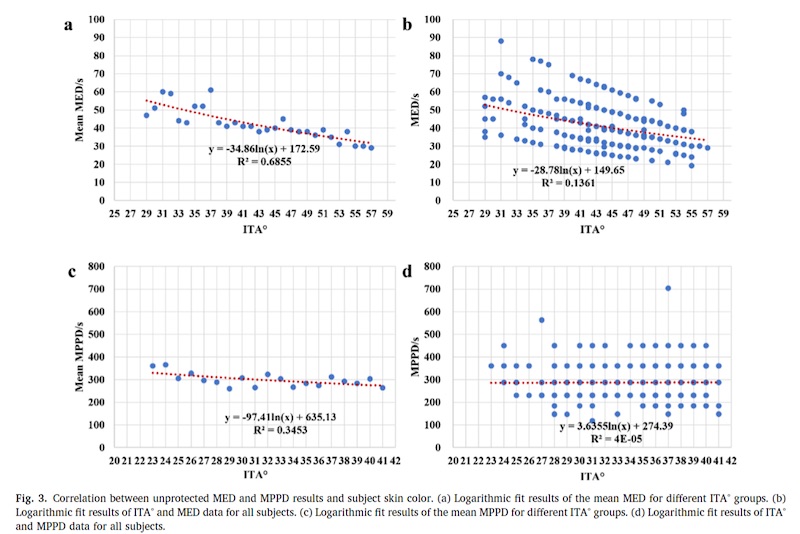 ¡¡¡¡Ñо¿·¢Ã÷£¬·ôÉ«²ÎÊýITA°ÓëÎÞ±£»¤MED³ÊÏÔÖø¸ºÏà¹Ø£¨P<0.05£©£¬¼´·ôɫԽdz£¬MEDÖµÔ½µÍ£¬Åúעdz·ôÉ«ÈËȺ¶ÔUVB¸üÃô¸Ð¡£ÕâһЧ¹ûÓëÈ«ÇòÊý¾ÝÇ÷ÊÆÒ»Ö£¬µ«Ñо¿»¹·¢Ã÷£¬¶«ÑÇÈËȺµÄMEDÂþÑܱäÒìÐÔ¸ü¸ß£¬ÓÈÆäÊÇÔÚdz·ôɫȺÌåÖС£ÕâÒâζ×Ųî±ðÒÅ´«Åä¾°ÈËȺÓÉÓÚÆäÆ¤·ôÐþÉ«ËØÐ¡ÌåÂþÑÜÌØÕ÷²î±ð£¬¹ØÓÚ×ÏÍâÏߵķÀ»¤ÄÜÁ¦±£´æ½Ï´ó²î±ð£¬Òò´ËÕë¶Ô²»ÈËȺµÄ·Àɹ²úÆ·»ò¶Ô²î±ðÊÜÊÔÈËȺµÄ·Àɹ²âÊÔ¾ùÐèҪƾ֤ÈËȺƤ·ôÌØÕ÷¾ÙÐпÍÖÆ»¯Éè¼Æ£¬ÒÔÌá¸ß·Àɹ²âÊÔµÄЧÂʲ¢È·±£·À»¤Ð§¹ûµÄÕæÊµÐÔ¡£