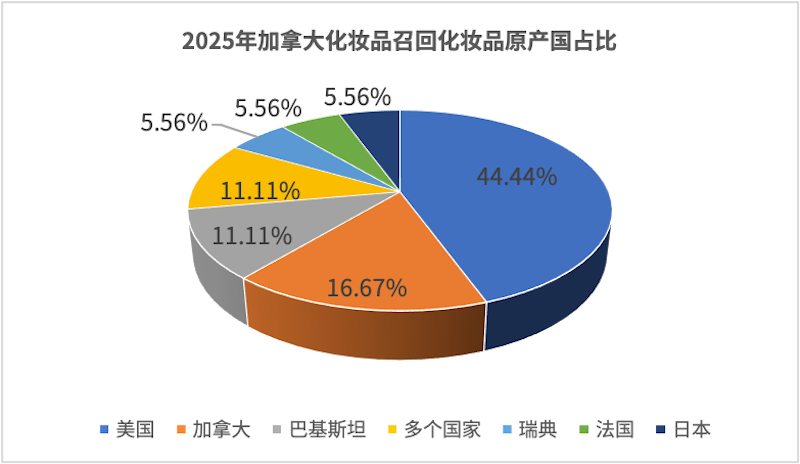 ¡¡¡¡2025Äê  £¬¼ÓÄôóÕٻغÍÇå¾²¾¯±¨ÏµÍ³£¨Recalls and Safety Alerts£©Ðû²¼ÁË18´Î»¯×±Æ·ÕÙ»Ø×ª´ï  £¬Éæ¼°92Àý²úÆ·  £¬Éæ¼°7¸öÔ­²úµØ¹ú¼Ò  £¬ÆäÖÐÔ¼44.44%ת´ïÕٻصIJúÆ·²ú×ÔÃÀ¹ú  £¬16.67%µÄ²úÆ·²ú×Ô¼ÓÄôó  £¬11.11%µÄ²úÆ·²ú×Ô°Í»ù˹̹µÈ  £¬Ïêϸ¼ûÏÂͼ ¡£