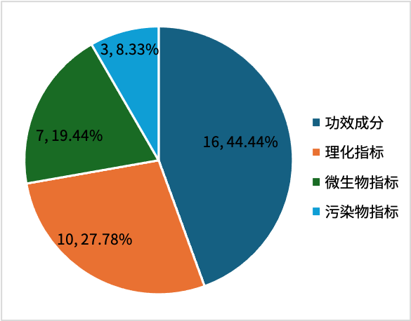 ¡¡¡¡´Ó±£½¡Ê³Îï³é¼ìȱ·¦¸ñÏîÄ¿ÆÊÎö£¬Èçͼ2Ëùʾ£¬³é¼ìȱ·¦¸ñÏîÄ¿·ÖΪ4ÖÖÖֱ𣬻®·ÖÊǹ¦Ð§ÒòËØ¡¢Àí»¯¡¢Î¢ÉúÎï¡¢ÎÛȾÎÆäÖй²¼Æ16¿î²úÆ··ºÆð¹¦Ð§ÒòËØÖ¸±êȱ·¦¸ñµÄÇéÐΣ¬Õ¼±È44.44%£¬Æä´ÎÊÇÀí»¯Ö¸±ê£¨10¿î£¬27.78%£©¡¢Î¢ÉúÎïÖ¸±ê£¨7¿î£¬19.44%£©¡¢ÎÛȾÎïÖ¸±ê£¨3¿î£¬8.33%£©¡£